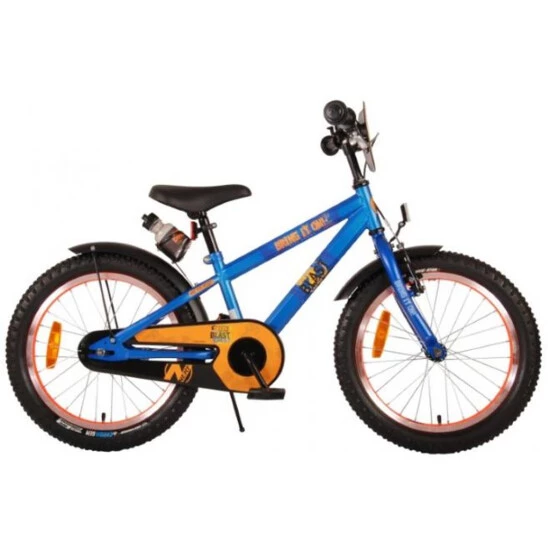 Die NERF Spiele werden durch die Geschwindigkeit dieses coolen Bikes noch spannender. Dieses supercoole Bike ist ganz im Stil der orange-blauen NERF blasters gehalten. Der geometrische Rahmen macht dieses Fahrrad zu einem echten Hingucker. Das Fahrrad hat extra breite 18-Zoll-Fett-Reifen, die das Fahrrad für Jungen zwischen 4 und 7 Jahren mit Konfektionsgröße 104-116 geeignet machen. Auch die Schutzbleche sind extra groß und schön geformt, damit sie den ganzen spritzenden Schmutz aufhalten. Zur Sicherheit verfügt das Fahrrad über Reflektoren an der Vorder- und Rückseite. Die Griffe und der Sattel sind weich für zusätzlichen Komfort und mit dem Flaschenhalter inklusive Wasserflasche haben Sie immer etwas zu trinken dabei. Zum Schutz kleiner Finger ist der Kettenschutz geschlossen. Es heißt NERF oder nichts!