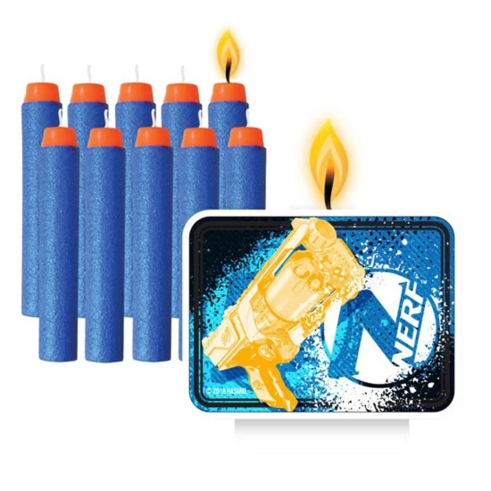 Feuern Sie Ihre NERFKugeln nicht auf diese Flammen, sondern genießen Sie den Kuchen, in dem sie stehen. Mit zehn klassischen Kerzen und einer speziellen NERFPartykerze wird jeder Kuchen zum Höhepunkt Ihres Geburtstages.