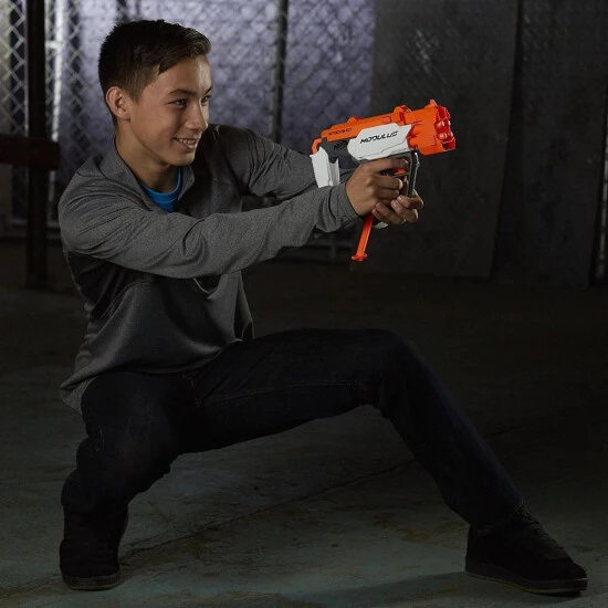 Einzeln ist dieser 4-Schuss Blaster schon eine Wucht, doch als Teil der beeindruckenden Modulus Serie von NERF wird der Barrelstrike zum 4-Dart Blasterlauf. Einfach an einen größeren Blaster der Modulus Reihe anstecken, und schon geht es bei den NERF Battles mit neuer Dart-Power in die Verlängerung. Enthält 4 Elite Darts. Kompatibel mit der Modulus Serie von NERF.