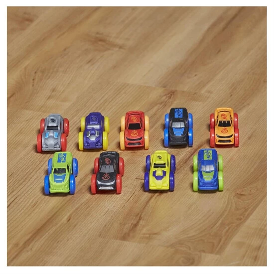 Mit 1 Einschuss-Blaster, 9 Soft-Racer, 1 Weitsprung-Rampen, 1 Hochsprung-Rampe und 12 Hindernissen