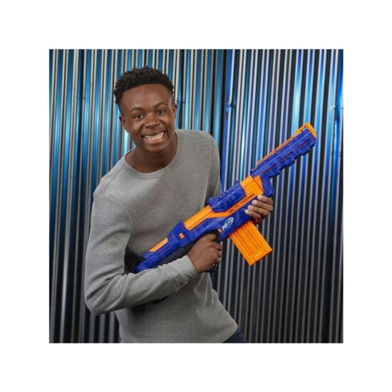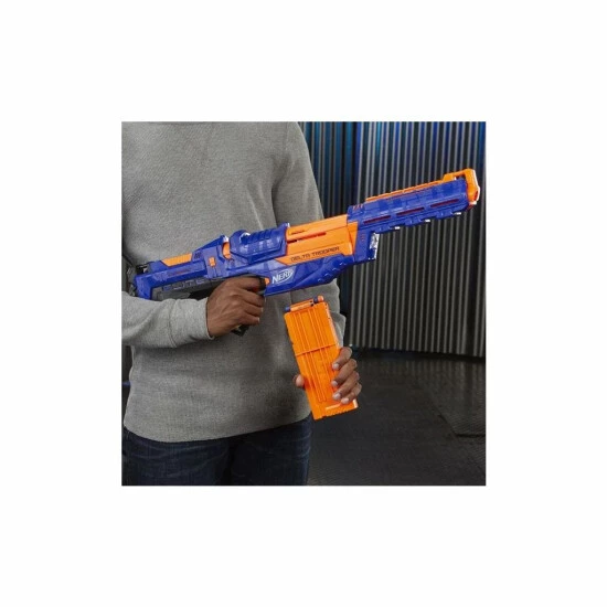 Bereite dich auf jede Schlacht mit dem NERF Elite Delta Trooper vor! Verwenden Sie zu Beginn Ihre Basis Nerf Elite, befestigen Sie den Hinterschaft, um Ihre beweglichen Schläge zu stabilisieren, und befestigen Sie schließlich die Laufverlängerung, um eine Distanz zu erreichen.