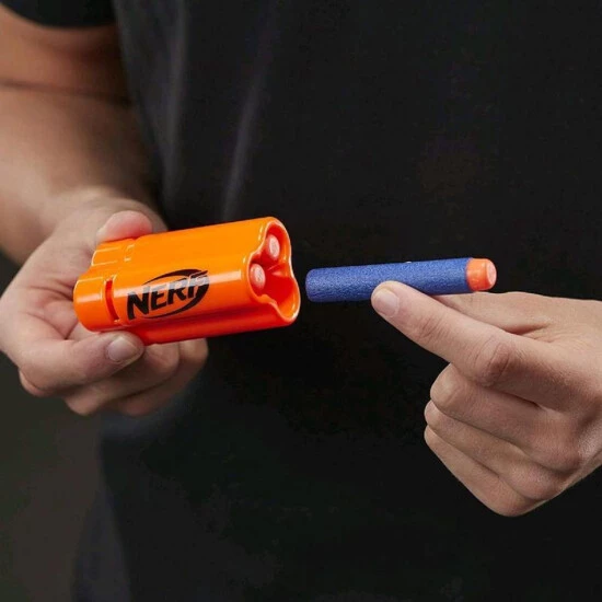 Der Hasbro Nerf N-Strike Elite Trilogy DS-15 Blaster wirft die leeren Hülsen aus, um die Nerf Action noch aufregender zu machen. Mit diesem Nerf Blaster, der 3 Darts gleichzeitig aus jeder Hülse abfeuert, kann eine Dreifach-Attacke gestartet werden. Wird der Blaster zum erneuten Feuern gespannt, wird die leere Hülse automatisch ausgeworfen. Der N-Strike Elite Blaster fasst jeweils 1 Hülse und bietet in der Schulterstütze Platz für 5 Hülsen zum schnellen Nachladen. Der Blaster kommt mit 5 Hülsen und 15 Nerf Elite Darts, genug, um alle Hülsen zu füllen. Es werden 3 Darts in eine Hülse geladen, dann wird die komplette Hülse in den Blaster eingesetzt, zum Spannen der Griff gezogen und der Abzug zum Feuern gedrückt. Beim Laden einer weiteren Hülse und Zurückziehen des Griffs wird die leere Hülse aus dem Blaster ausgeworfen. Nerf Elite Darts fliegen besonders weit, wurden auf Leistung und Qualität getestet und bestehen aus Schaumstoffmaterial und flexiblen, hohlen Spitzen. Batterien sind nicht erforderlich.