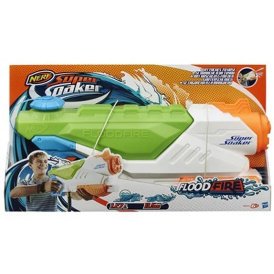 Super Soaker FloodFire Füllmenge: 1,8 Liter Altersempfehlung: ab 6 Jahren Schießt bis zu 11 m weit Mit Anschluss für den Gartenschlauch