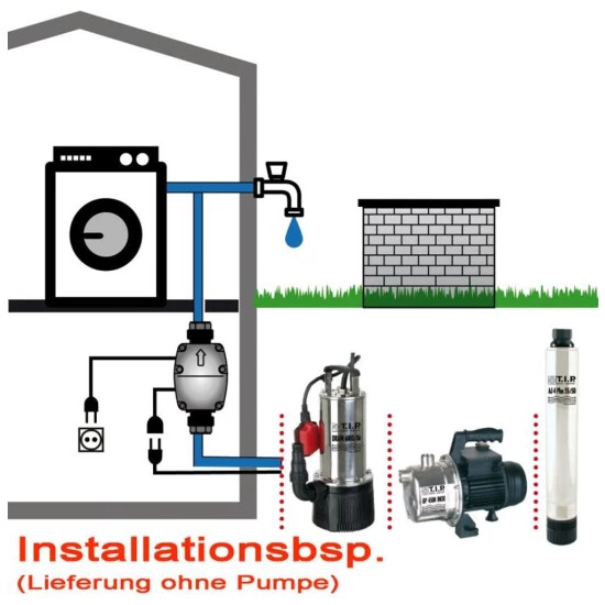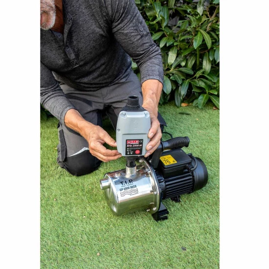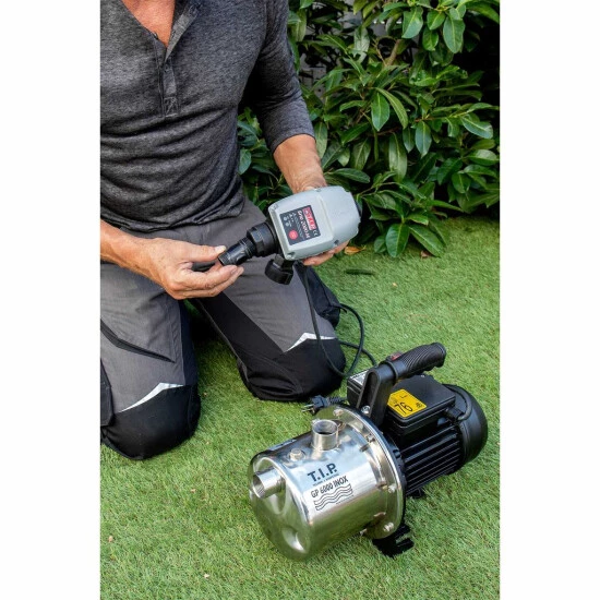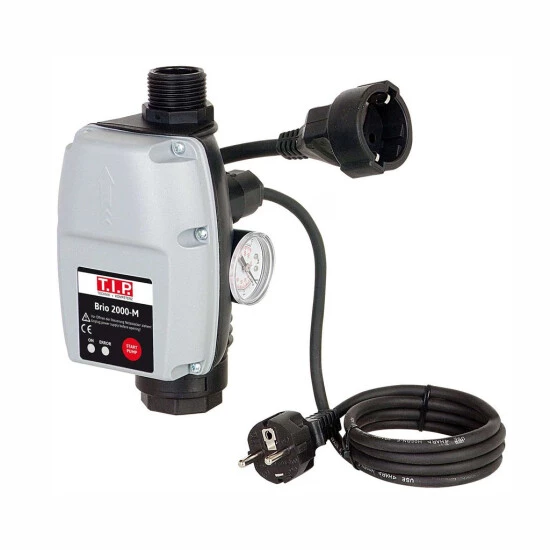 Automatisierung: Kombination von Pumpe und SteuerungssystemAls elektronisches Steuerungssystem empfiehlt sich der Brio 2000-M, der sich durch eine hohe Funktionssicherheit auszeichnet. Sein Einschaltdruck lässt sich variieren, nicht jedoch der Abschaltdruck, da nach dem Schließen des Wasserhahns eine leistungsabhängige Automatikabschaltung erfolgt. Auch alle Tauchdruck- und Tiefbrunnen-pumpen von T.I.P. eignen sich zur Automatisierung, da sie den erforderlichen Mindestdruck von 1,5 bar erzeugen können.Die Automatisierung einer Pumpe bietet vielfältige Vorteile. So lässt sich Brunnenwasser oder in Zisternen gesammeltes Regenwasser zur Hauswasserversorgung – z.B. für den Betrieb von Waschmaschinen, für Duschen oder die Toilettenspülung – verwenden. Auch bei der Bewässerung bzw. beim Betrieb von Beregnern überzeugt eine automatisierte Pumpe durch hohe Effizienz und Zuverlässigkeit.Vorteile einer AutomatisierungDie Automatisierung einer Pumpe bietet vielfältige Vorteile. So lässt sich Brunnenwasser oder in Zisternen gesammeltes Regenwasser zur Hauswasserversorgung – z.B. für den Betrieb von Waschmaschinen, für Duschen oder die Toilettenspülung verwenden. Auch bei der Bewässerung bzw. beim Betrieb von Beregnern überzeugt eine automatisierte Pumpe durch hohe Effizienz und Zuverlässigkeit.Technische Daten:Betriebsüberdruck max.: 10 barEinschaltdruck: 1,0 bis 3,5 barAnschluss Eingang: IG 30,93 mm und AG 33,25 mm (1?) (AG über beiliegenden Doppelnippel)Anschluss Ausgang: AG 33,25 mm (1?)Größe: 13,0 x 22,5 x 10,5 cmGewicht: 0,75 kgNetzanschlusskabel: 1,5 m / H05RN-FTemperatur max. Flüssigkeit: 55° CPumpengehäuse: Kunststoff, schlagfest