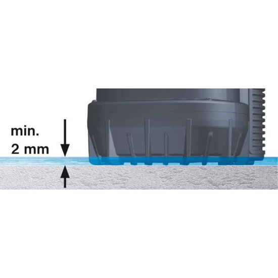 Im manuellen Betrieb ansaugend schon ab 10 mm Wasserstand und flachabsaugend bis 2 mm.