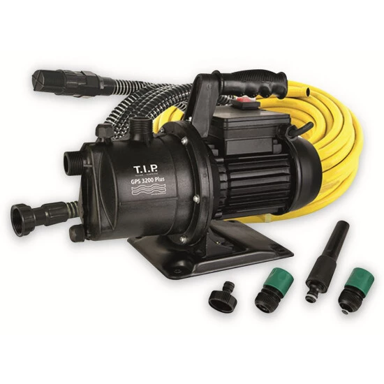 Sehr leichte, mobile und flexibel einsetzbare Gartenpumpe mit Kunststoffpumpengehäuse und Ein- /Ausschalter. Für das Fördern von klarem Wasser. Durch den hohen Wirkungsgrad ist dieses Gerät auch gut geeignet zum Betrieb von Beregnern. Das Pumpengehäuse besteht aus schlagfestem Kunststoff. Lieferumfang: 4 m Ansaugschlauch (25,4 mm / 1), 20 m Gartenschlauch (12,7 mm / 1/2), 4 teilige Anschlussgarniturmax. Förderhöhe: 42 mmax. Fördermenge: 3.200 l/hmax. Druck: 4,2 barmax. Ansaughöhe: 9 mPumpengehäuse: Kunststoff, GF verstärktAnschlusskabel: H07RN-FDruckanschluss: 33,25 mm (1 AG)Sauganschluss: 33,25 mm (1 AG)Anzahl Beregner max.: 2Ansaugschlauch: 4 m, (25,4 mm/1)Bewässerungsschlauch: 20 m, (12,7 mm/1/2)wartungsfreier Kondensatormotor mit Thermo ÜberlastungsschutzZum Befüllen und Entleeren von Wassertanks u. ä.