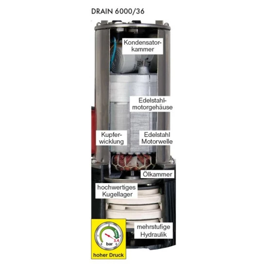 T.I.P. Hochdruck-Tauchpumpe DRAIN 6000/36 max. Fö. 6.000l/h