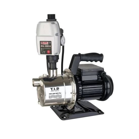 Zuverlässiges und kraftvolles Allround-Modell für alle Einsätze, wie z. B. der Wasser entnähme aus der Leitung. Das elektronische Steuerungssystem (Brio 2000-M) schützt vor Schäden durch den Betrieb bei Wassermangel. Ideal geeignet zur Hauswasserversorgung und zur automatisierten Verbesserung. Ergonomisch geformter Tragegriff. Hauswasserautomat auf stabiler Grundplatte angebracht. inkl. elektronische Pumpensteuerung und Doppelnippelmax. Förderhöhe: 44 mmax. Fördermenge: 4.250 l/hmax. Druck: 4,4 barmax. Ansaughöhe: 9 mSauganschluss: 30,93 mm (1 IG)Druckanschluss: 33,25 mm (1 AG)Edelstahlpumpengestänge1,5 m Anschlusskabelmax. 4 Beregnerergonomisch geformter Tragegriff