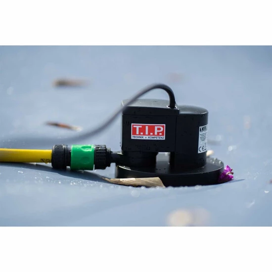 Die innovative Poolcoverpumpe von TIP bietet die Lösung für ein altbekanntes Problem: Verschmutztes Sammelwasser in der Mitte der Poolabdeckung. Die kleine und handliche Poolcoverpumpe beseitigt dieses Sammelwasser zuverlässig im Automatikbetrieb bis zu einem Absaugniveau von 2 cm. Mit nur 20 Watt Dauerleistung ist die Pumpe sehr energieeffizient. Der Schwamm am Fuß der CoverOne 1500 AUT verhindert das Verstopfen der Pumpe und ermöglicht dadurch einen störungsfreien Betrieb. Die Poolcoverpumpe eignet sich auch perfekt zur Flachabsaugung von kleineren Becken wie z.B. Whirlpools.Anwendungsbereich:- Entwässerung des Poolcovers / Poolabdeckungen- Entwässerung von Whirlpools- Zum Abpumpen von Sammelwasser auf der Poolabdeckung- Schutz vor Trockenlauf durch integrierten Schwimmerschalter- Mit Schnellanschlussstück- Automatischer Betrieb- Mit 20 Watt sehr energieeffiziente Pumpe- Filterschwamm verhindert das Verstopfen der Pumpe- Auch zur Flachabsaugung von kleineren BeckenAuch perfekt zur Flachabsaugung von kleineren Becken wie z.B. Pop-up Whirlpools geeignet.Technische Daten:Netzspannung / Frequenz: 230 V / 50 HzNennleistung: 20 WattDruckanschluss: AG 26,44 mm (¾“)Fördermenge max.: 1.300 l/hMax. Druck / Max. Förderhöhe: 0,16 bar / 1,6 mStartniveau: 25 mmAbschaltniveau: 20 mmMax. Größe der gepumpten Festkörper: 2 mmMax. Temperatur der gepumpten Festkörper: 35 °CLänge Anschlusskabel: 10 m / H05RN-F