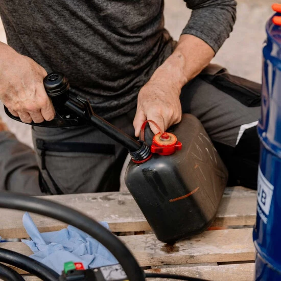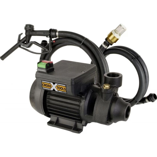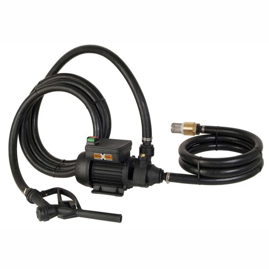 Die Pumpe kann maximal aus einer Tiefe von 5 m ansaugen (nicht selbstansaugend). Ausgestattet ist dieses Modell komplett mit Zapfpistole, Messing-Fußventil und hochwertigem Ansaug- und Zapfschlauch (2 m / 4 m).