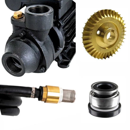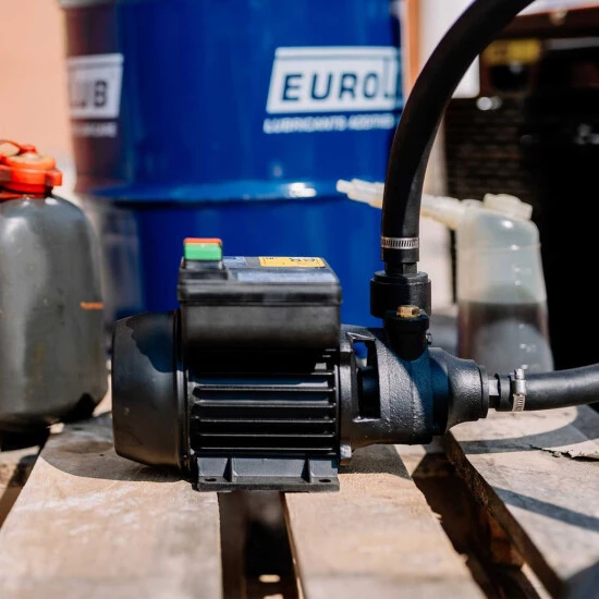 Robuste Peripher-Pumpe zur Förderung von Heizöl, Diesel-Kraftstoff undDiesel. Mit Gusspumpen-gehäuse, Messinglaufrad und Ein- und Ausschalter.